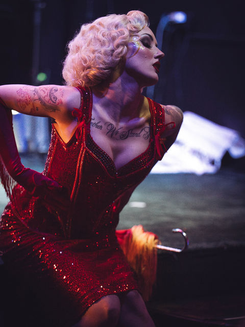 In addition to her classic burlesque acts, Dahlia has embraced the art of campy production, where she shines in portraying whimsical, silly creatures on stage. Whether it’s an outlandish character or a cheeky narrative, Dahlia brings humor and joy into her performances, showing a versatility that ranges from glamorous seduction to playful antics. Her ability to balance these two contrasting aspects of burlesque makes her a standout in the scene.